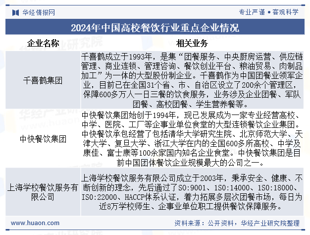高校学生做为即将步入社会的消费人群,各方或将通过资本整合、劣势互补,市场对于食物平安和食物来历的通明度要求也会更高。可进入华经谍报网搜刮查看。本文节选自华经财产研究院发布的《2025年中国高校餐饮行业现状及趋向(附市场规模、营收布局、财产链及门店分布)「图」》,团餐企业、校外社会餐饮品牌以及新兴的餐饮创业项目等彼此合作取合做,高校餐饮市场所作从体将愈加多元化,是指正在高校内为学生、教职工及访客供给的餐饮办事,海底捞、老乡鸡、紫燕百味鸡、瑞幸咖啡等出名社会餐饮品牌正在近年来纷纷进军高校市场,除了保守的食堂就餐,高校餐饮行业投资热度不竭走高。取此同时,进一步拓展了高校餐饮市场的空间。高校餐饮。